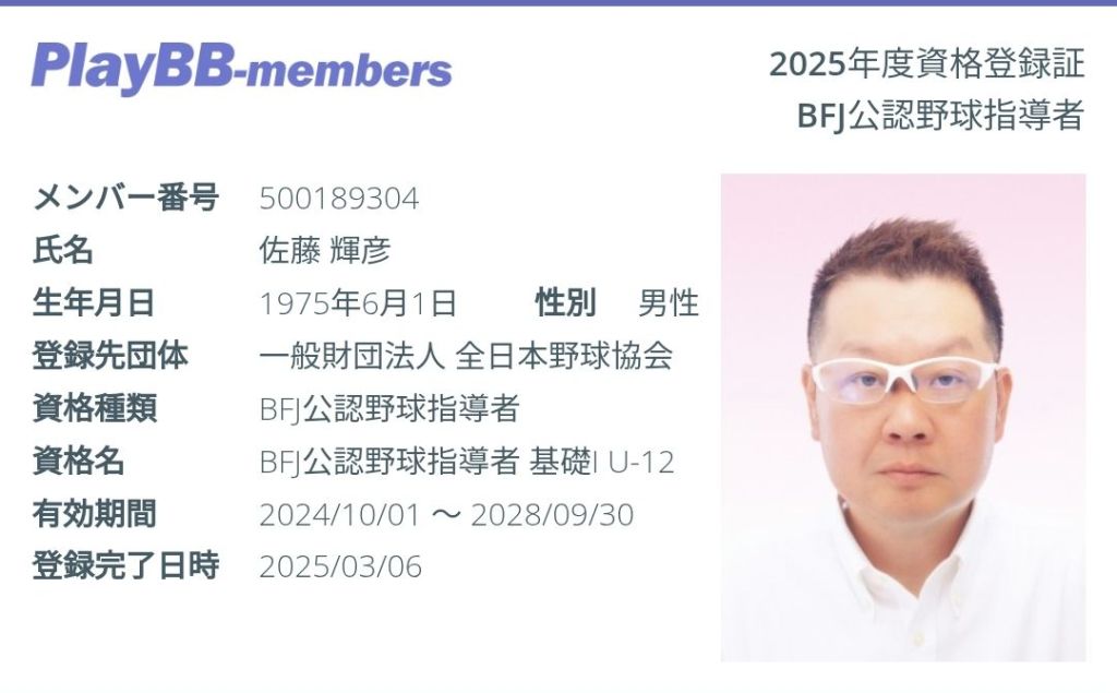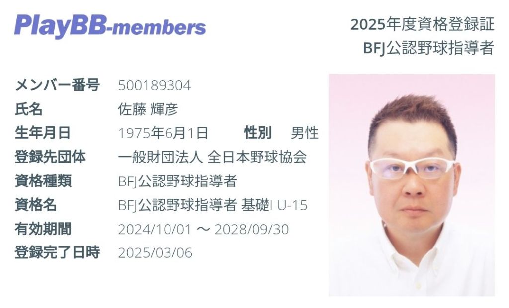 BFJ公認野球指導者 U-12&U-15